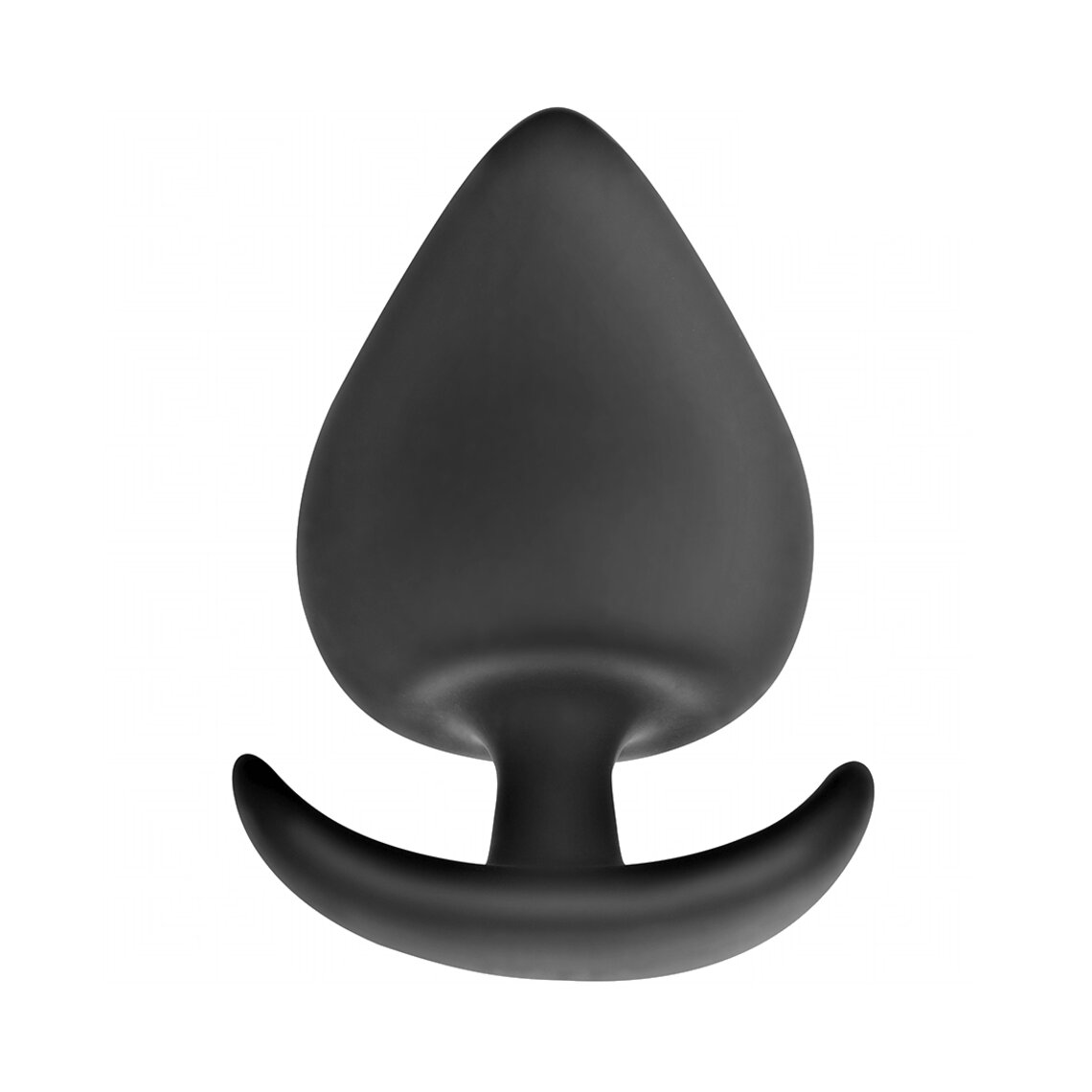 Extra grote siliconen anale plug met spadevouw en haakvormige basis. In te brengen lengte: 8,5 cm, diameter: 5,1 cm.