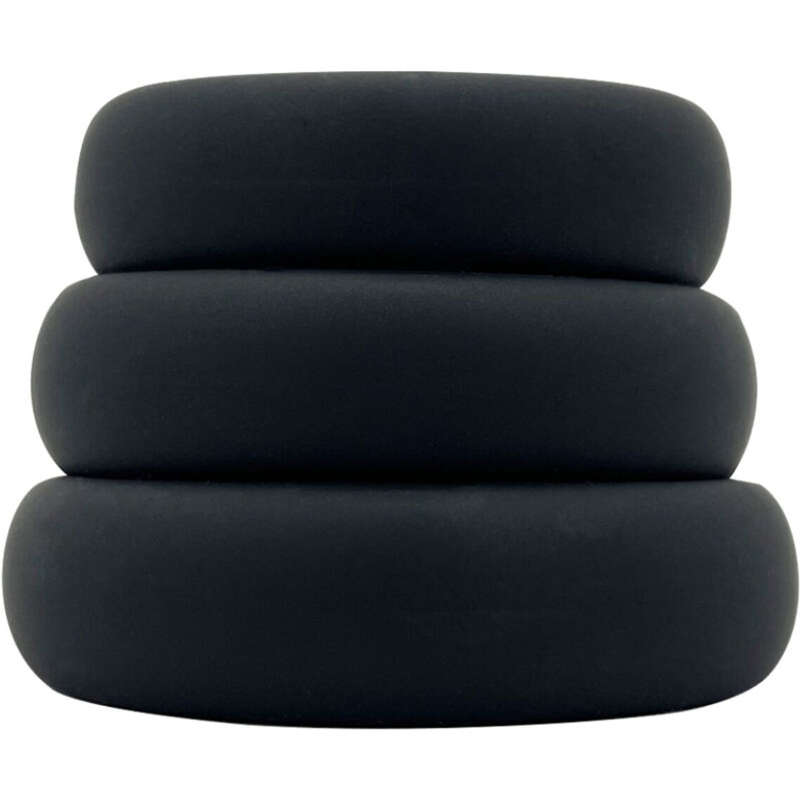 Set van 3 zwarte siliconen penisringen. Hoogwaardig, flexibel en elastisch siliconen. Diameters: 4,2 cm, 4,7 cm en 5,3 cm.