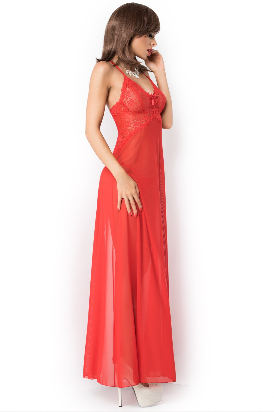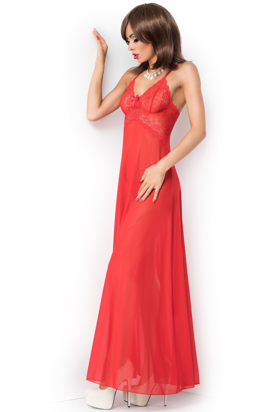 Lange nachtjurk met open rug. Verkrijgbaar in rood en zwart.
