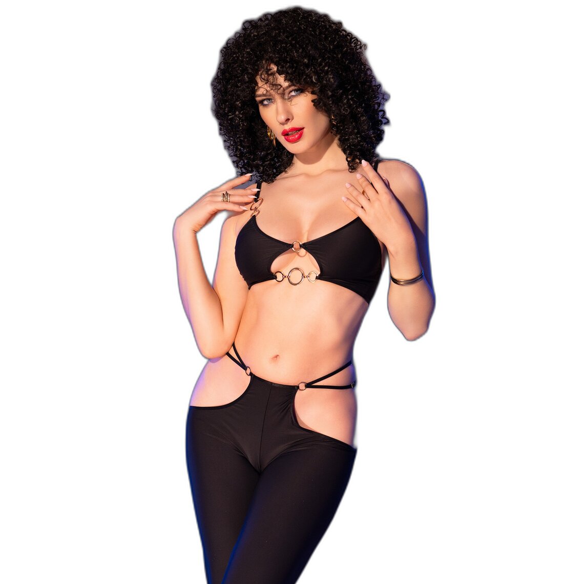 Chilirose 4851 - Set zwarte top en leggings met gouden details