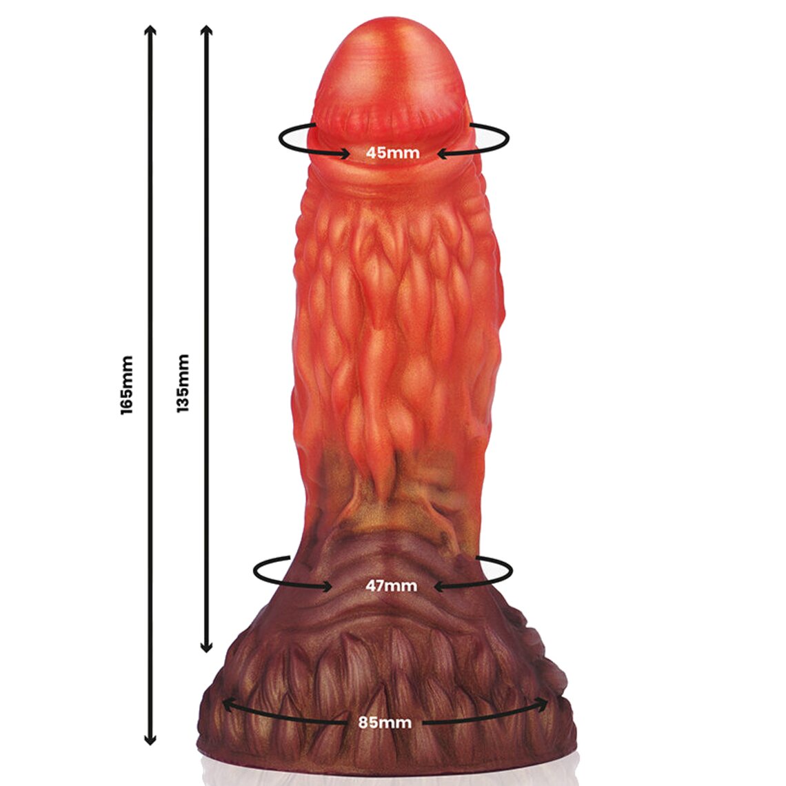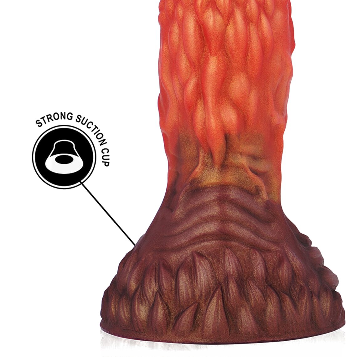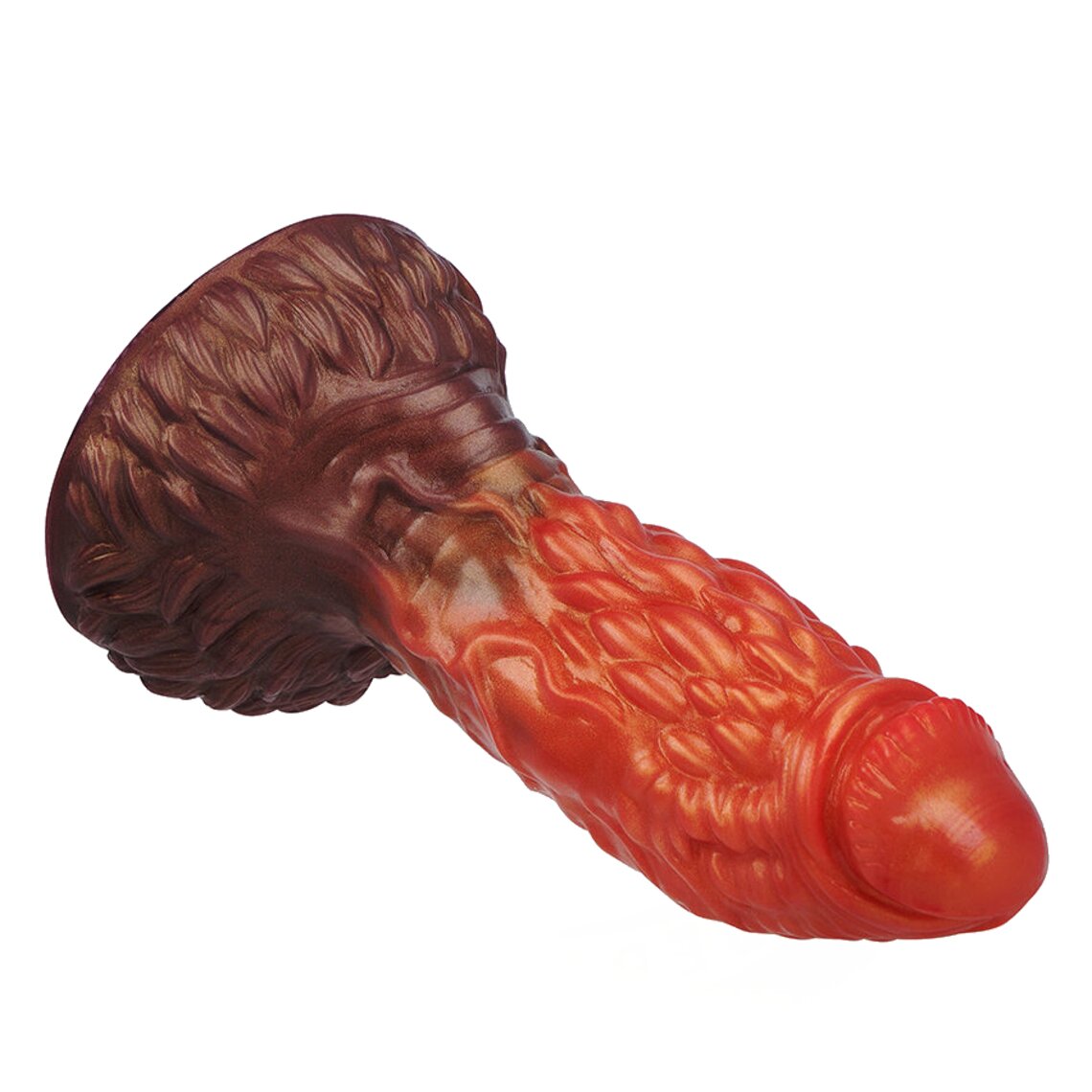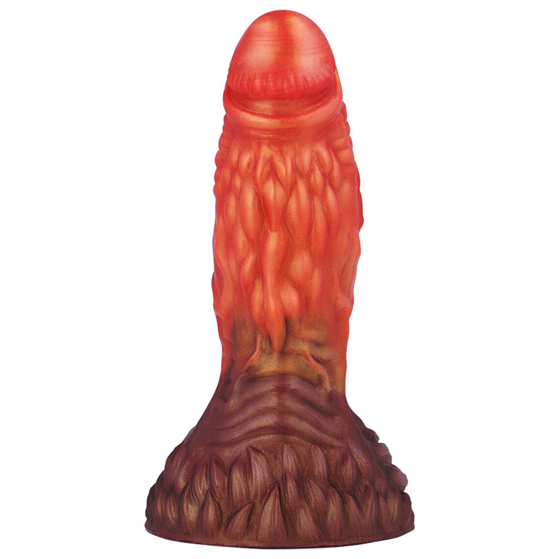 Fantasie dildo met fallisch uiterlijk geïnspireerd op aardwortels. 16,5 cm hoog. Tweekleurig: bruin en oranje.