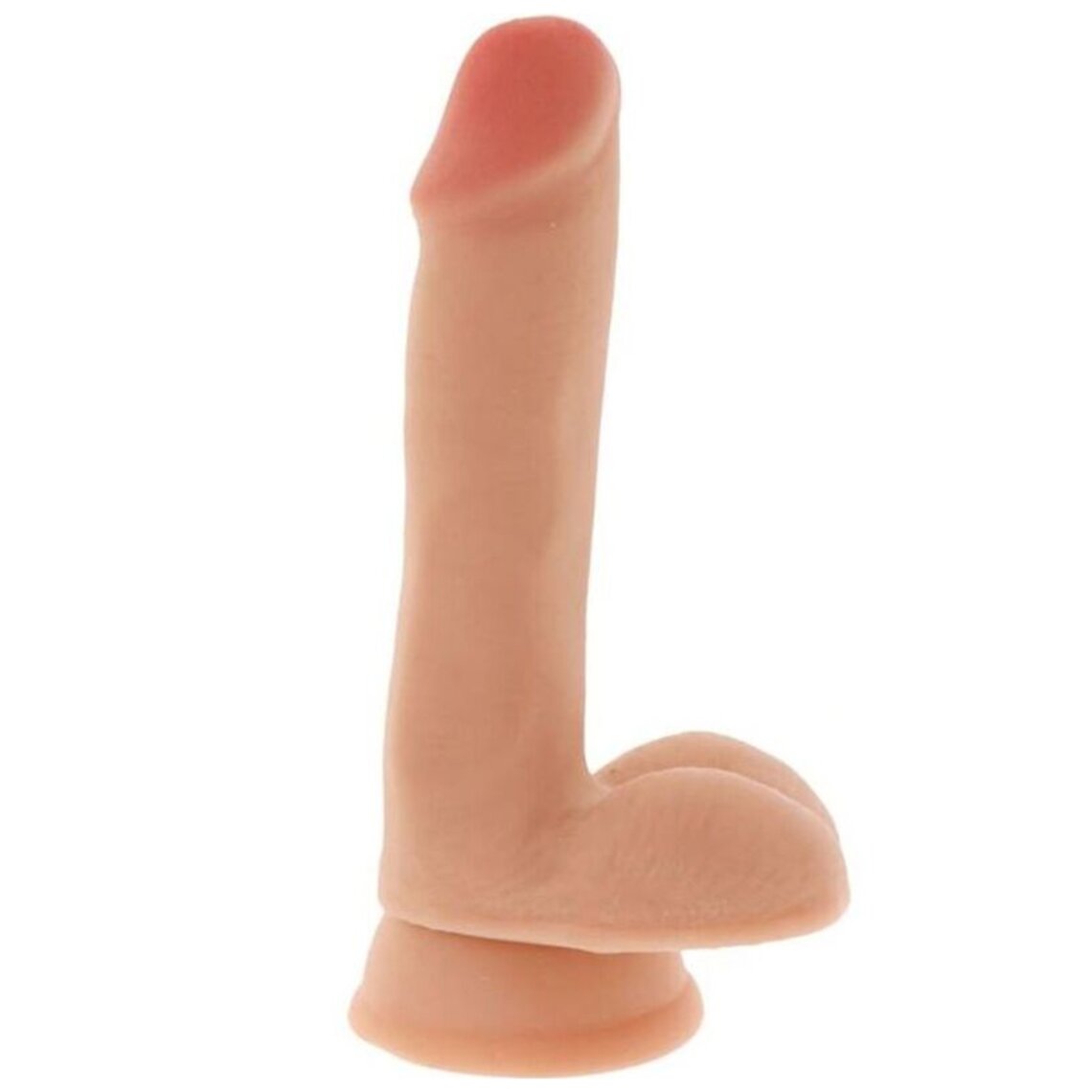 Realistische dildo in de vorm van een 17 cm penis met ballen. Gemaakt van dubbellaags materiaal voor extra realisme.