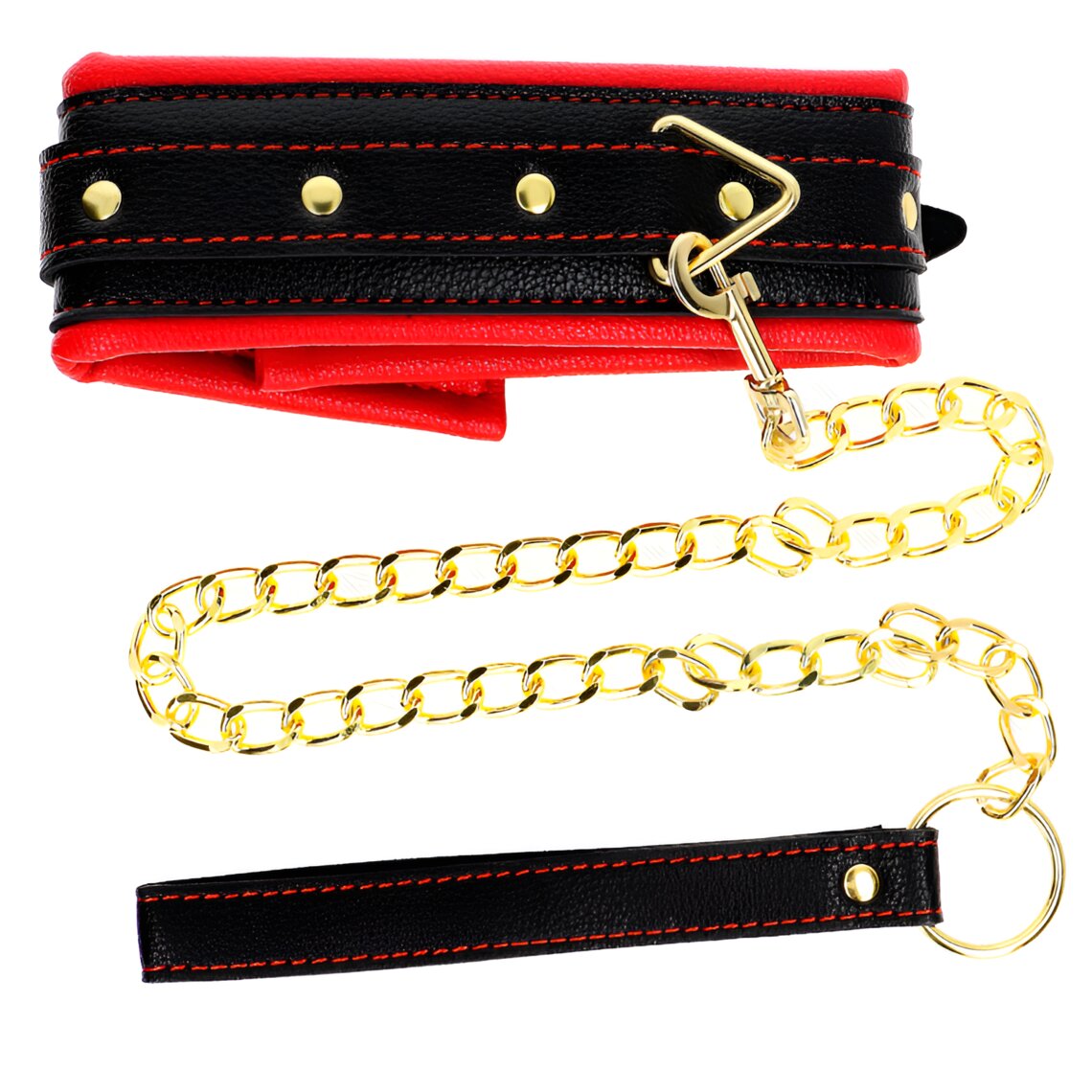 Gewatteerde kunstleren halsband met lijn, gouden ketting en verstelbare gesp