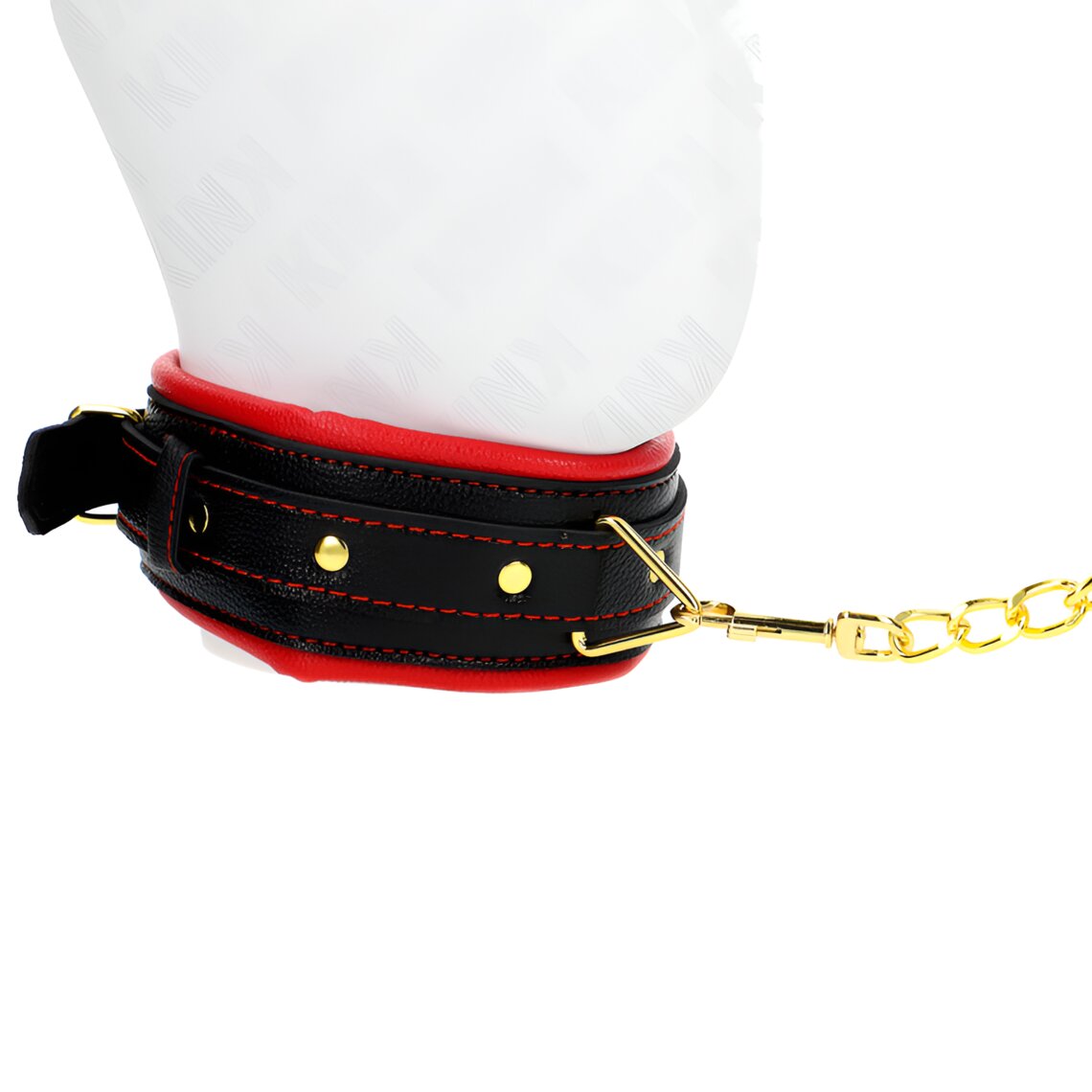 • Productomschrijving  Kink - Gewatteerde kunstleren halsband met lijn