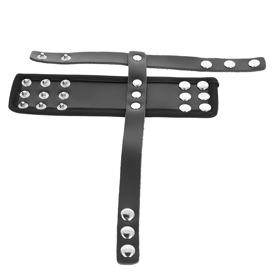 Een BDSM-stijl accessoire dat synthetisch leer en metalen details combineert voor een duurzaam, verstelbaar en visueel opvallend ontwerp.