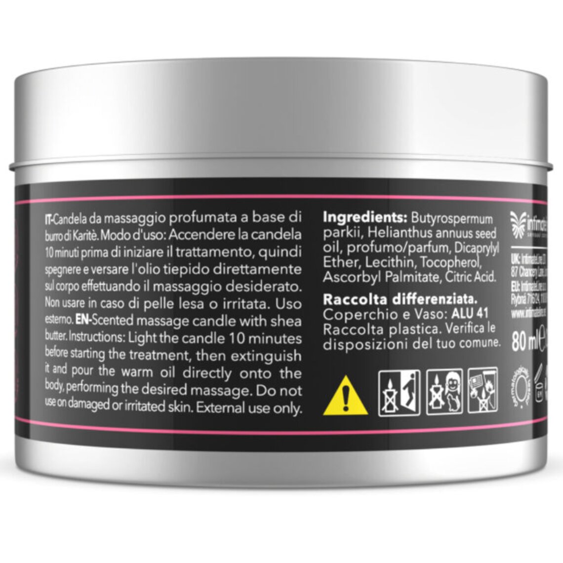 Aromatische massagekaars met aardbei-druif geur voor intieme massage.