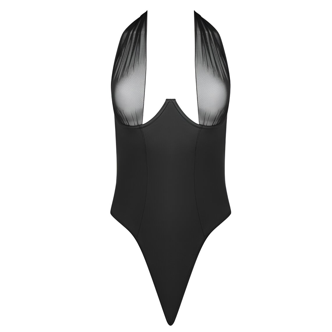 Laat je omhullen door de verfijning van de Kesmina body, een kledingstuk ontworpen om je silhouet te benadrukken met een perfecte balans tussen sensualiteit en elegantie. De combinatie van delicate transparantie en lederlook afwerking creëert een moderne en onweerstaanbare uitstraling.