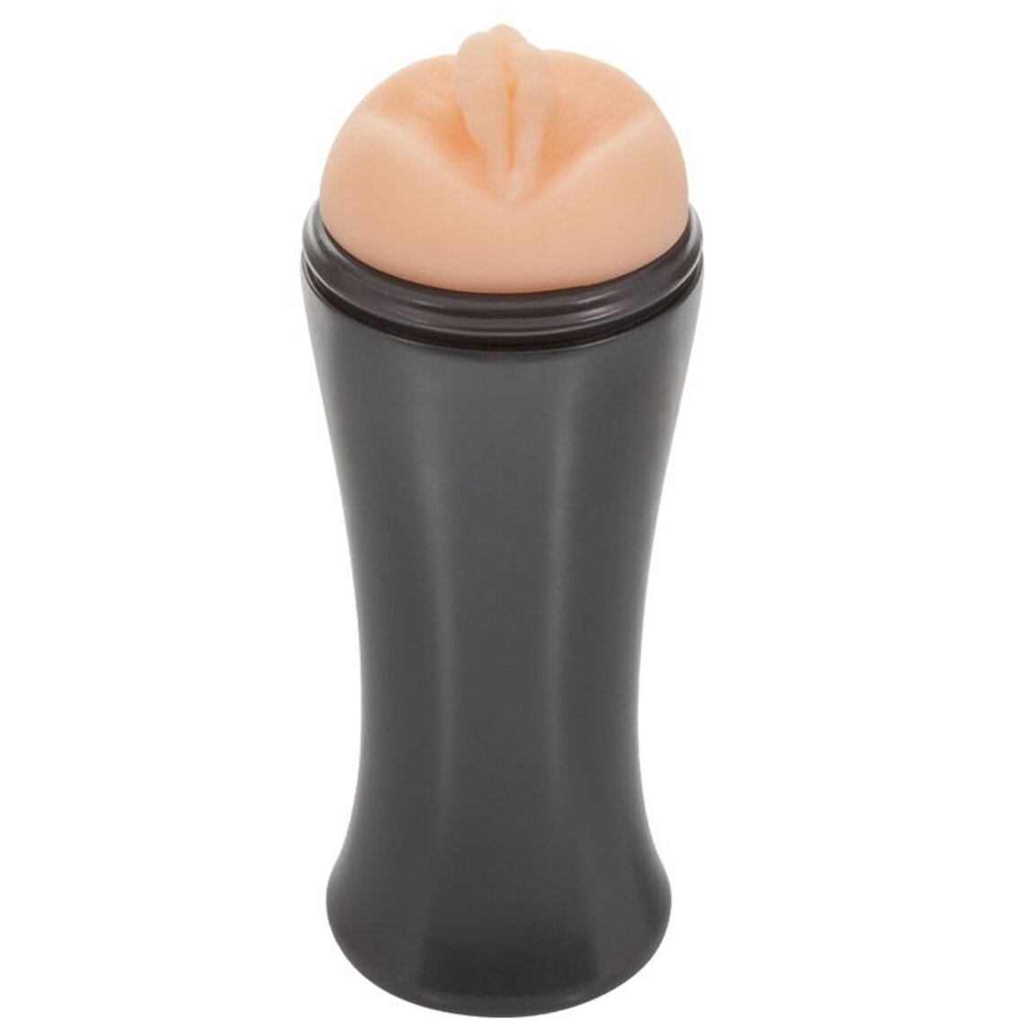 Vagina in blik voor masturbatie. Reismasturbator van realistisch gestructureerd siliconen.