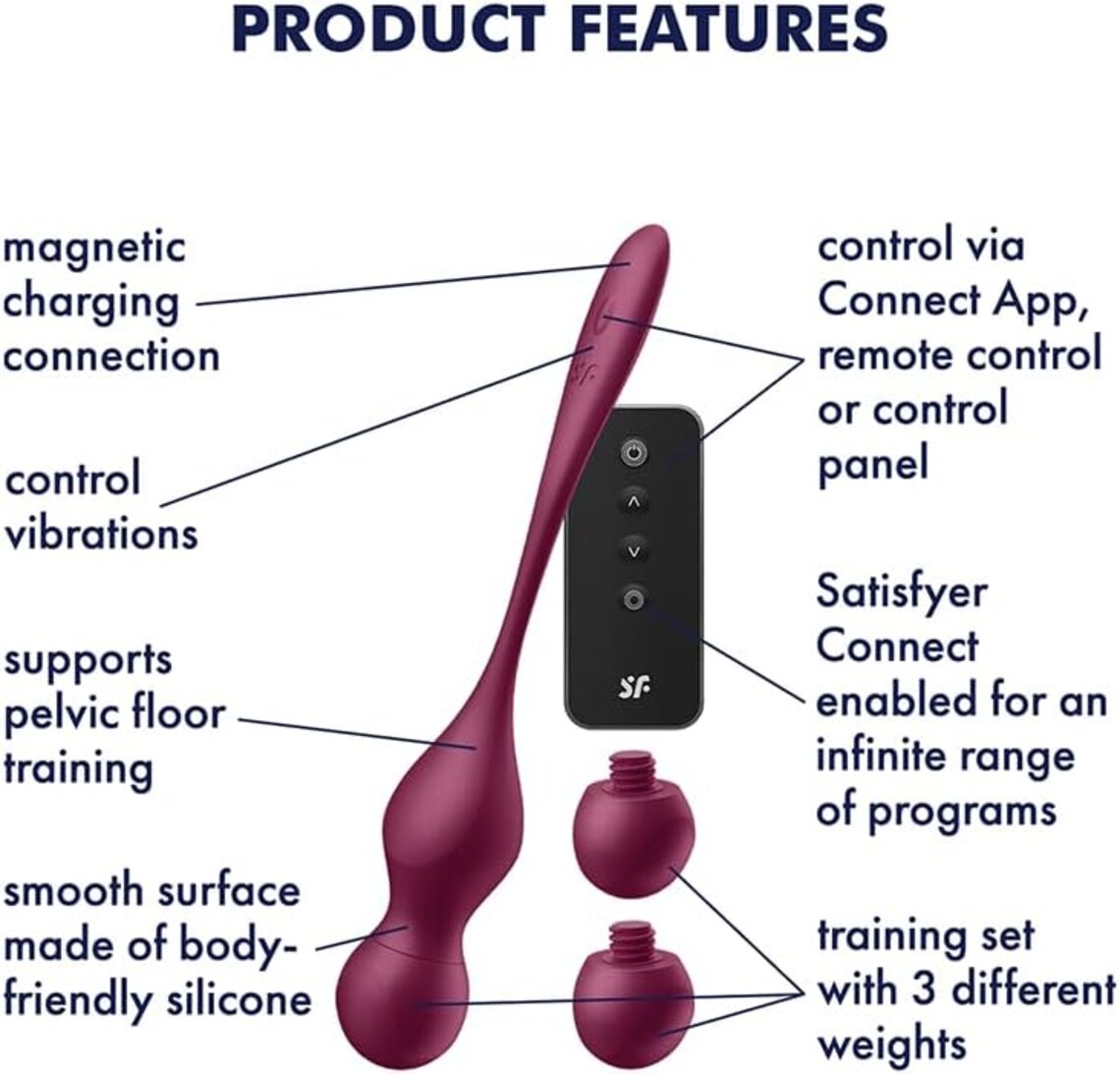 Designed with an ergonomic body-friendly silicone shape and removal strap, these balls insert easily and simplify use. With just 10 minutes of daily training, you can integrate Love Birds Vary into your daily routine and enjoy the powerful vibrations they offer. These little gems can be conveniently controlled via the One Touch button, the included remote control or with the free Satisfyer Connect app. Delight your senses and strengthen your pelvic floor with Satisfyer Love Birds Vary.