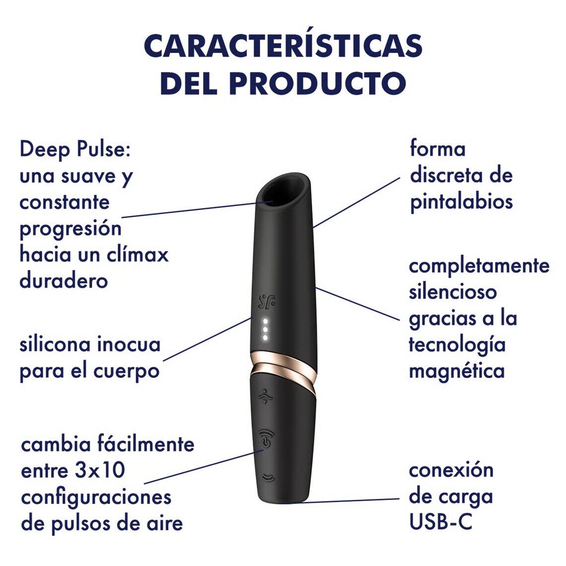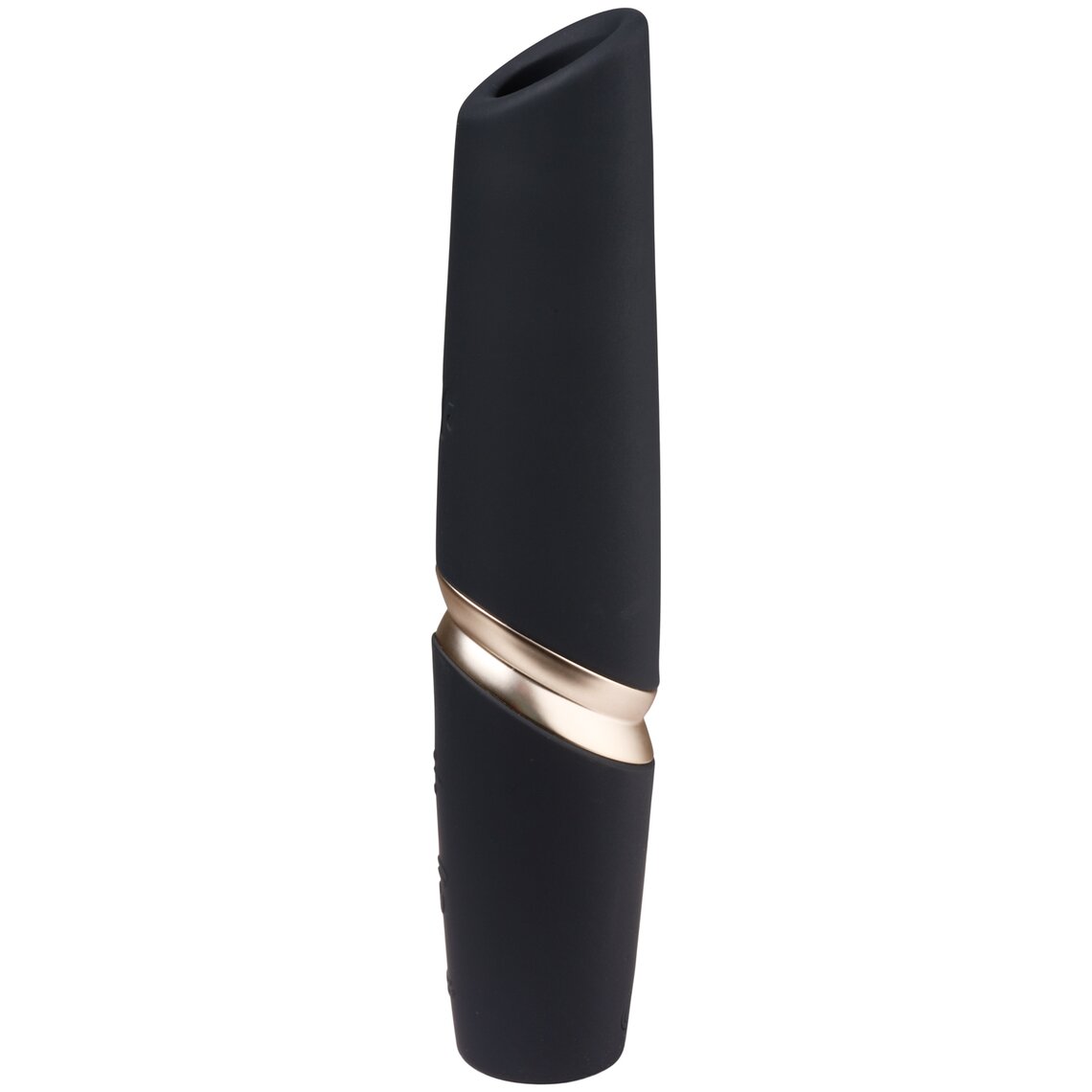 Zwarte pocketvibrator die de clitoris stimuleert met luchtdrukgolven. Zeer discreet lipstickontwerp.