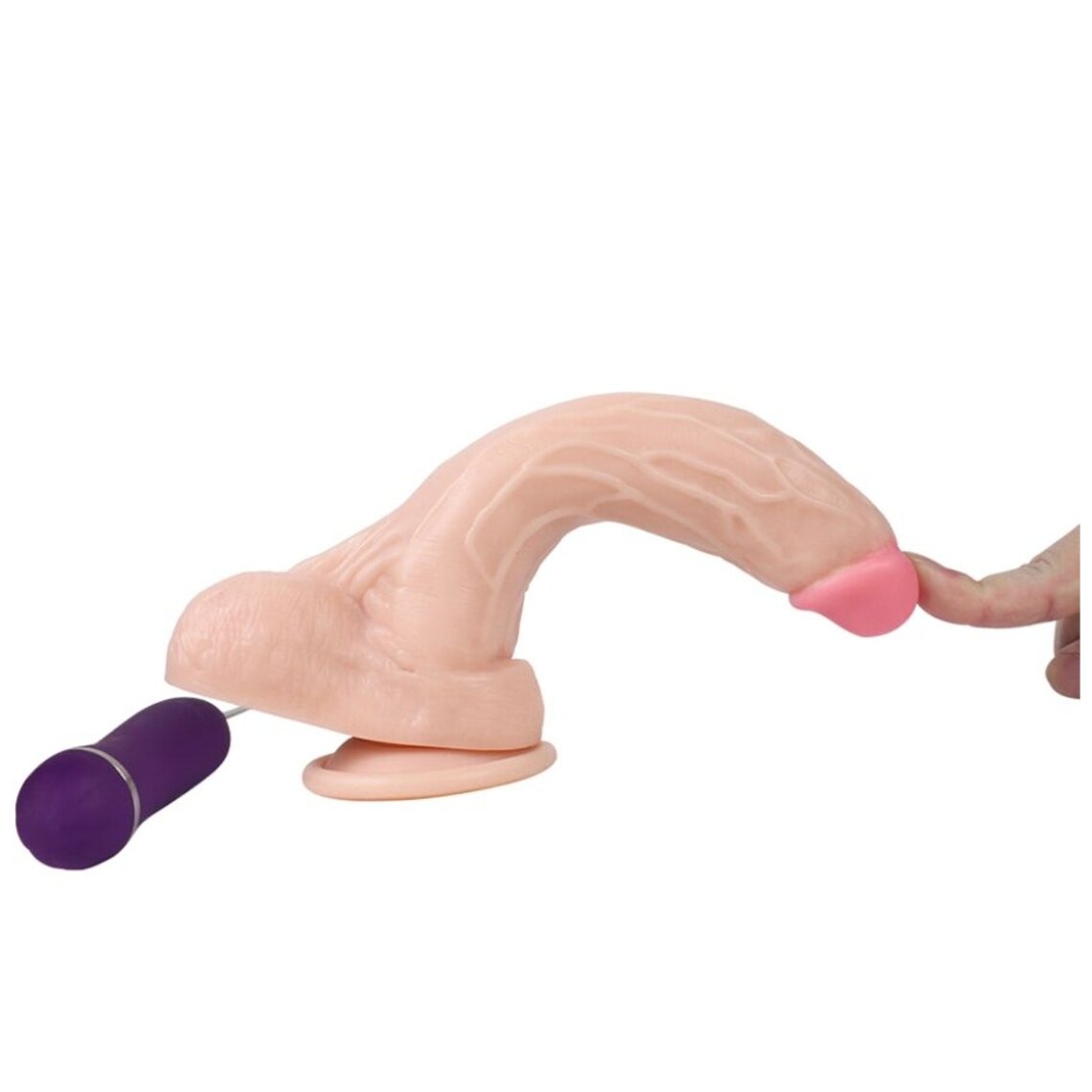 Vibrator met zuignap en realistisch penisontwerp van 21 cm. Bediening via kabelafstandsbediening.