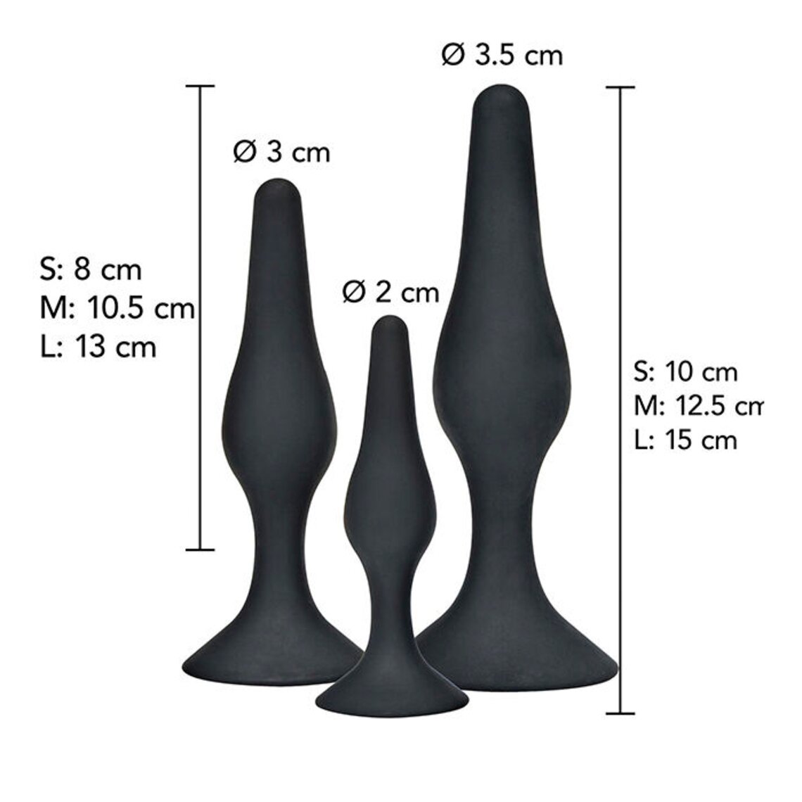 Set van 3 zwarte buttplugs. Ideaal voor beginners in anale stimulatie.