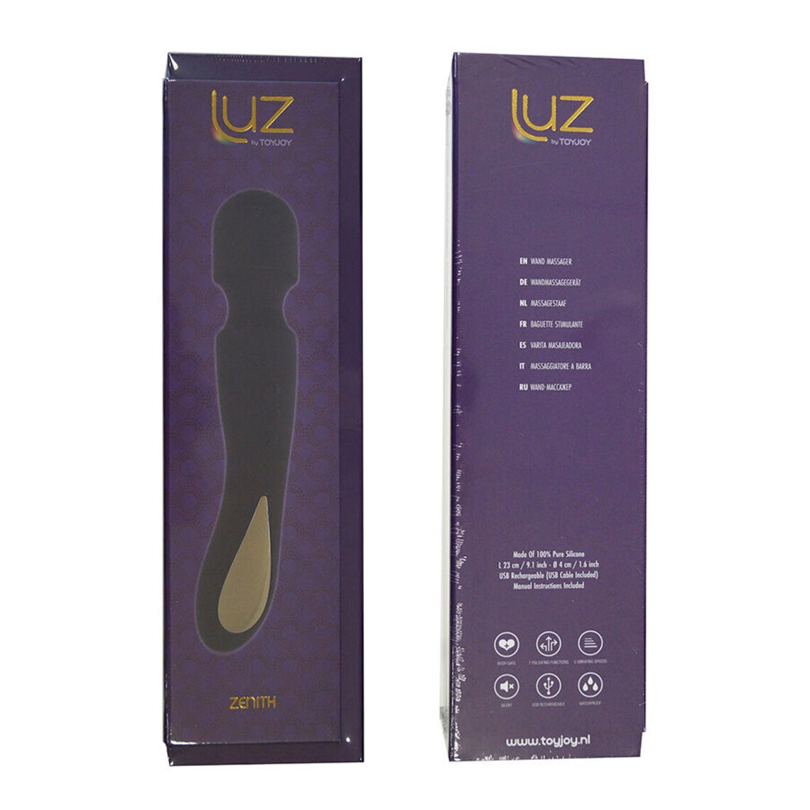 The Zenith wand massager offers all the luxurious features of LUZ by TOYJOY in a sleek, stylish design. Its USB-rechargeable design is made of premium soft-touch silicone for a smooth, comfortable, and luxurious feel. The Zenith features 7 functions of vibration, pulsation, and gradual increase, easily controlled via intuitive buttons. The handle/base of the toy features a unique multi-color LED light that illuminates your pleasure and sets the perfect mood for an intimate and sensual exploration session.